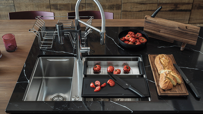 Savremene sudopere karakterišu sofisticirane detalje koji olakšavaju rad u kuhinji. Osim praktične osnovne opreme, postoji i ekskluzivni dodatni pribor, koji sudoperu pretvara u višenamensku radnu površinu. Vrhunac je inovativni Franke „PUSH-PULL“ daljinski upravljač za otvaranje/zatvaranje odvodnog ventila. Inteligentan sistem: veći komfor, manje posla.