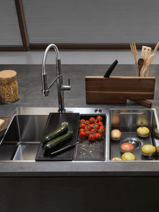 Pretvorite svoju sudoperu u prekrasan radni prostor uz prilagođene daske za rezanje, rešetke za sudoperu i cedila. Franke kuhinjski dodaci su dobro osmišljeni i oduševljavaju svojom visokokvalitetnom funkcionalnošću. U takvom savršeno funkcionalnom radnom okruženju, priprema, posluživanje, pa čak i naknadno čišćenje postaju čisti užitak.