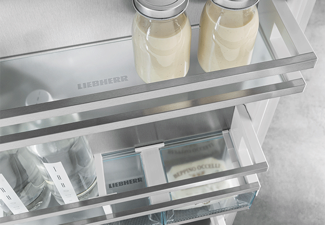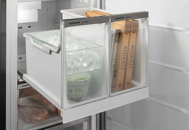Liebherr ugradni frižider na prvi pogled ostaje neotkriven i sakriven iza fronti kuhinje, što do izražaja dovodi dizajn kuhinje. Međutim, kad se otvori, postaje jasno: iza njega se krije nešto sasvim posebno. Samostojeći uređaji - tradicionalni i bezvremenski sa jedne strane, elegantni i izuzetni sa druge. Novi jezik dizajna besprekorno se uklapa u svaki enterijer. U unutrašnjosti osvajaju elegantne komponente od stakla i nerđajućeg čelika. Novi koncept rasvete LightTower ravnomerno osvetljava enterijer i uz to nosi staklene police. Fleksibilan je, jedinstven i štedi prostor. Precizna obrada, fokusiranost na detalje i skladna kombinacija materijala, oblika i boja stvaraju privlačan estetski izgled. Na to novi koncept rasvete nežno skreće pažnju.