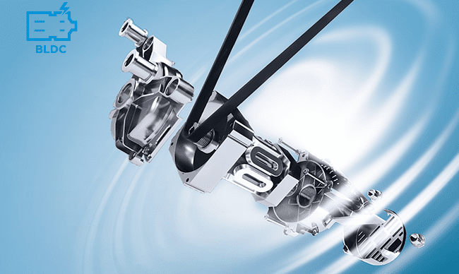 Ovaj motor prevladava urođene mane klasičnog motora. Četkice i komutator zamenjeni su elektronskim upravljanjem čime su izbegnuti gubici energije i varničenje. Upravljanje brzinom je mnogo efikasnije i prilagođeno potrebama ciklusa pranja. Sam motor je mnogo trajniji jer je trošenje materijala i komponenti značajno smanjeno.