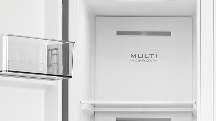 Multi-Air Flow sistem cirkulacije vazduha obezbeđuje trodimenzionalnu cirkulaciju hladnog vazduha unutar uređaja. Kao rezultat, cela komora ima odgovarajuću temperaturu, a uskladišteni proizvodi se ravnomerno hlade. Na taj način hrana duže ostaje sveža, čuva se ukus i nutritivna vrednost hrane.